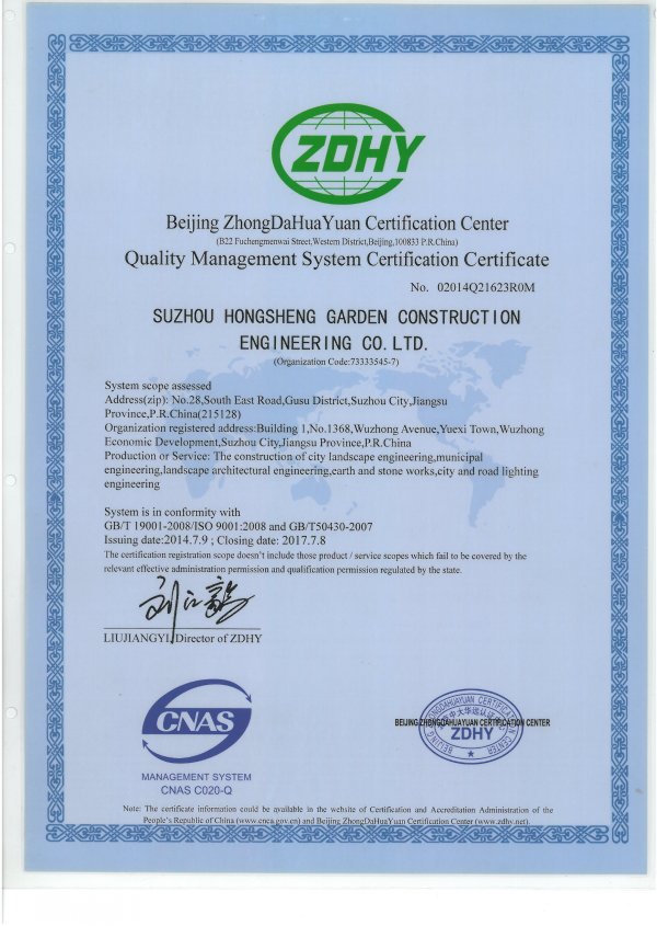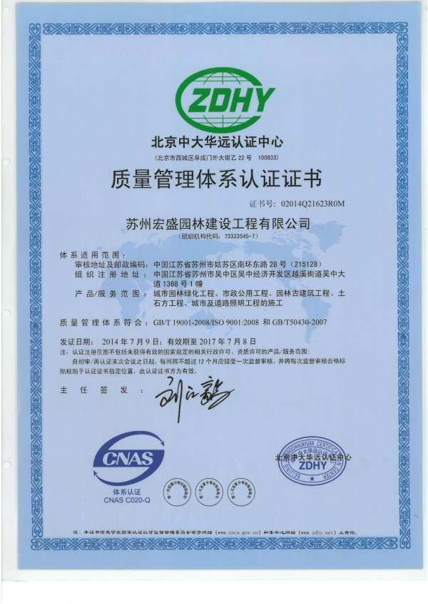 祝贺我公司在全体领导及员工的共同努力下,通过ISO三位一体认证(ISO9001、ISO14001、T28001)。通过本次的ISO认证,使本公司对质量管理、环境管理及职业健康安全管理的标准更上一层楼。工程质量优良率逐年提高,业主满意率逐年提高,公司业务量蒸蒸日上